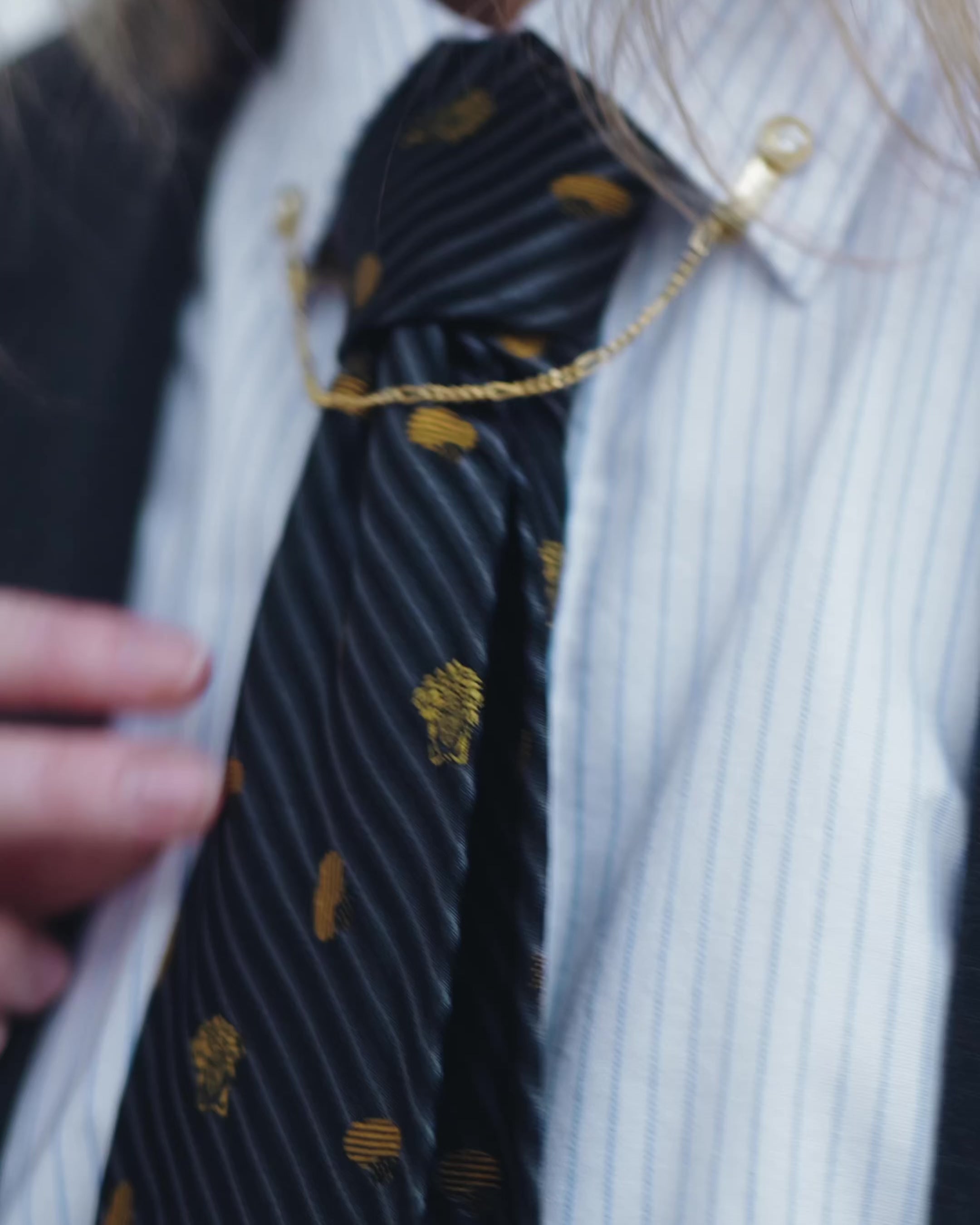 Pure silk, pure Versace. A vintage jacquard tie marked with the Medusa—sharp, iconic, and styled with effortless swagger.